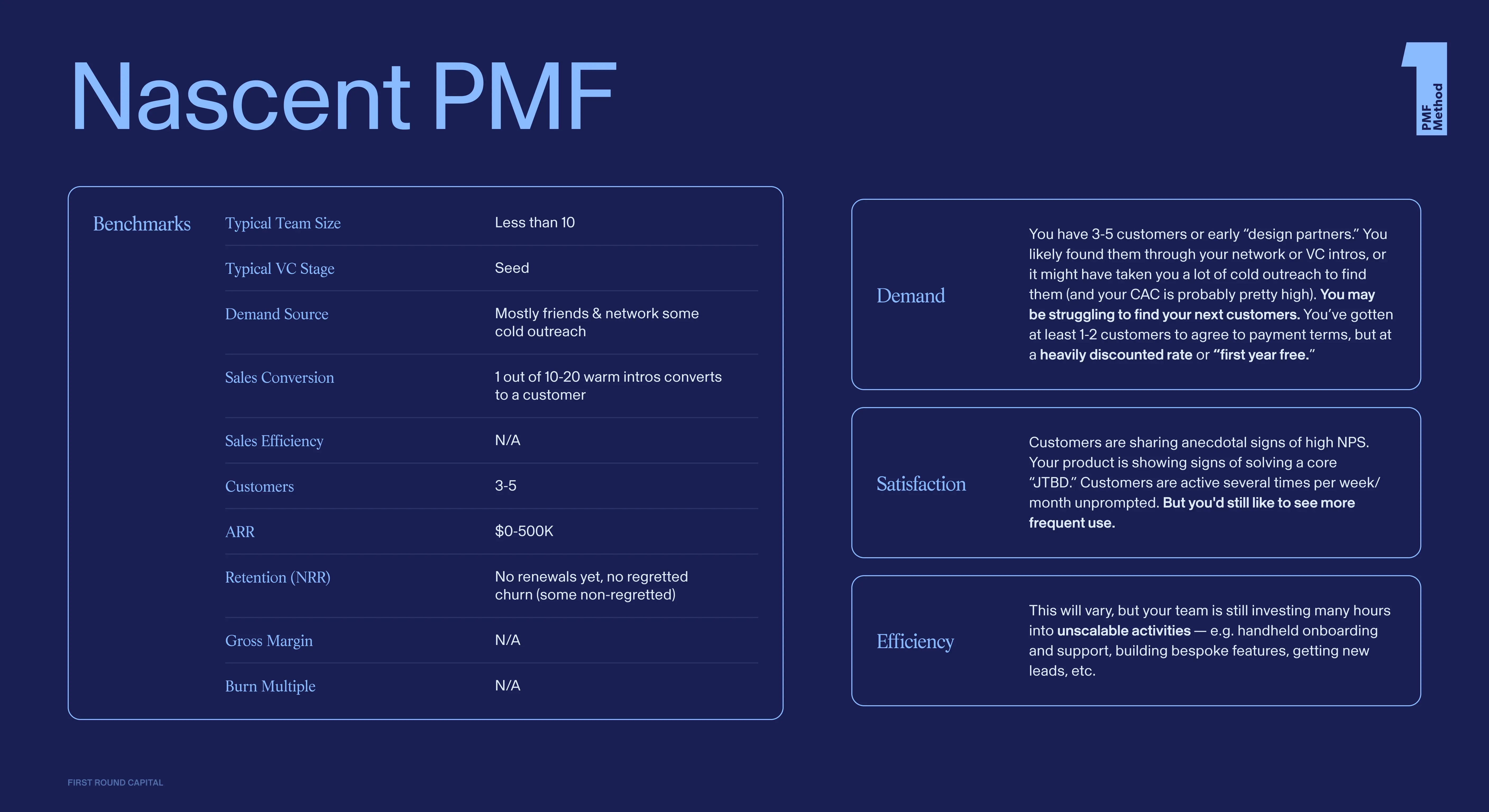 You work your ass off to prove there is a problem-market fit. For the more theoretical among us, as First Round explains in their PMF playbook, here you are at Level 1 of the PMF journey (see more here).